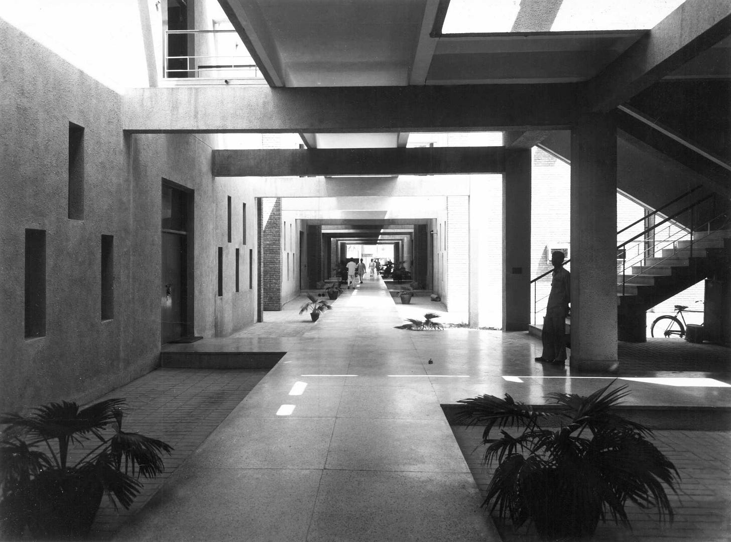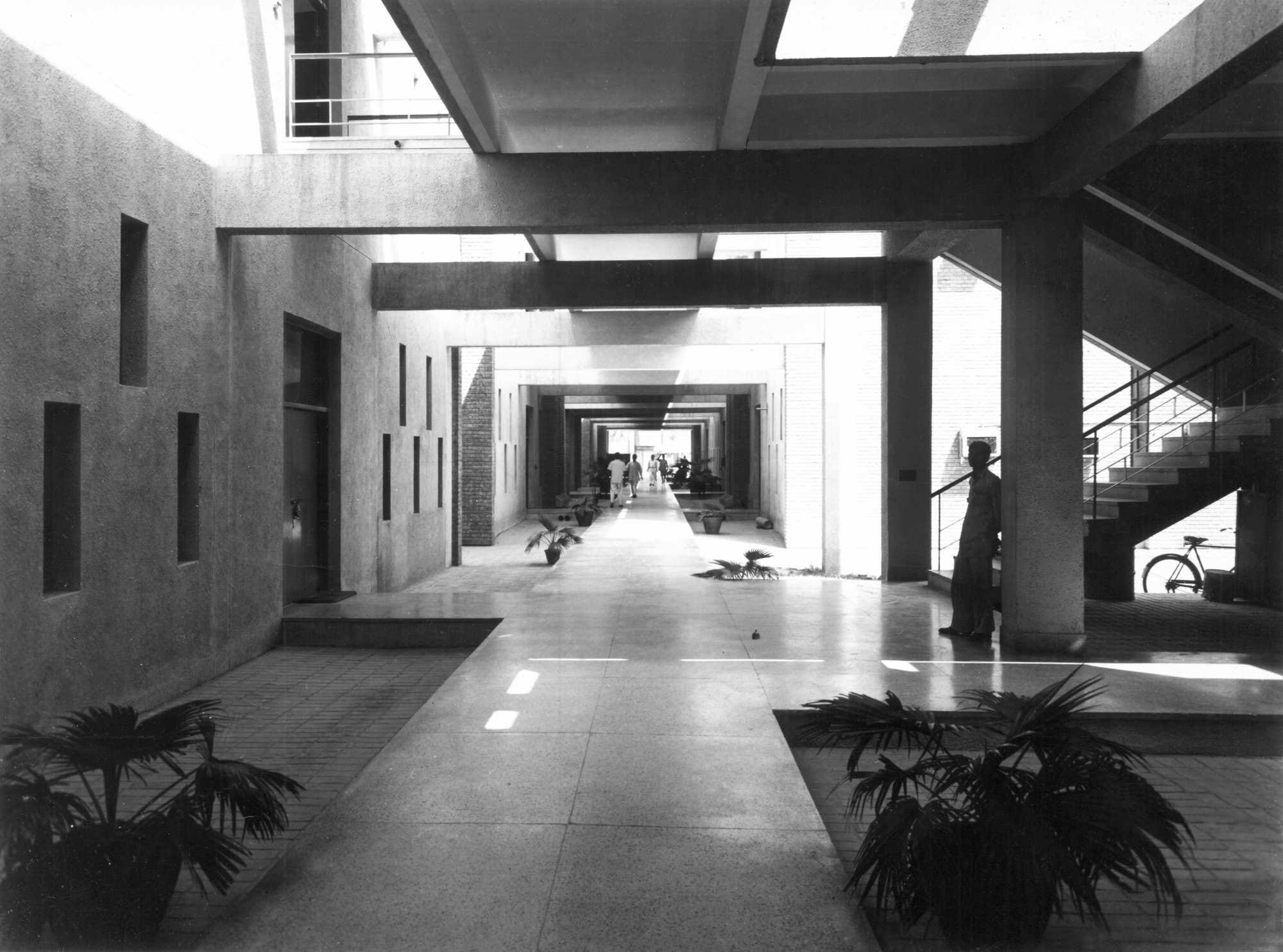 The design diverged from the flamboyance of art-deco style of most of the bigger cities and the cubic volumes and surfaces of the International Style (that Kanvinde was trained in under Walter Gropius, influenced by Le Corbusier and Louis Kahn), by instilling a human quality and scale to the language of Brutalism. Effectively, it was an architectural expression reflecting the culture and aspirations of a newly independent, young India, setting the precedent for several future buildings and institutes. In many ways, it represented the Nehruvian vision of a functionalist, modern identity.